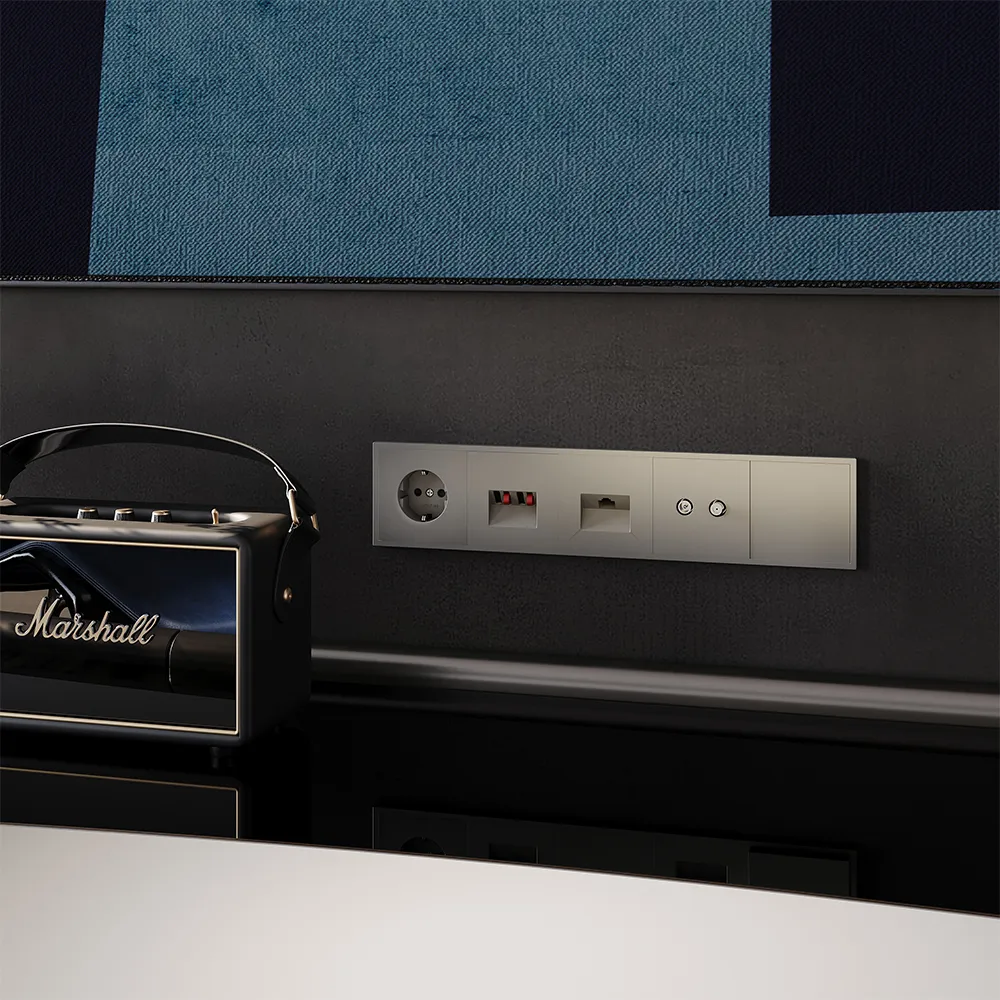 Розетка легко комбинируется с другими устройствами серии — например, можно разместить рядом электрическую розетку для питания ТВ и USB-порт для приставки в одной рамке, создав функциональный и стильный блок управления.