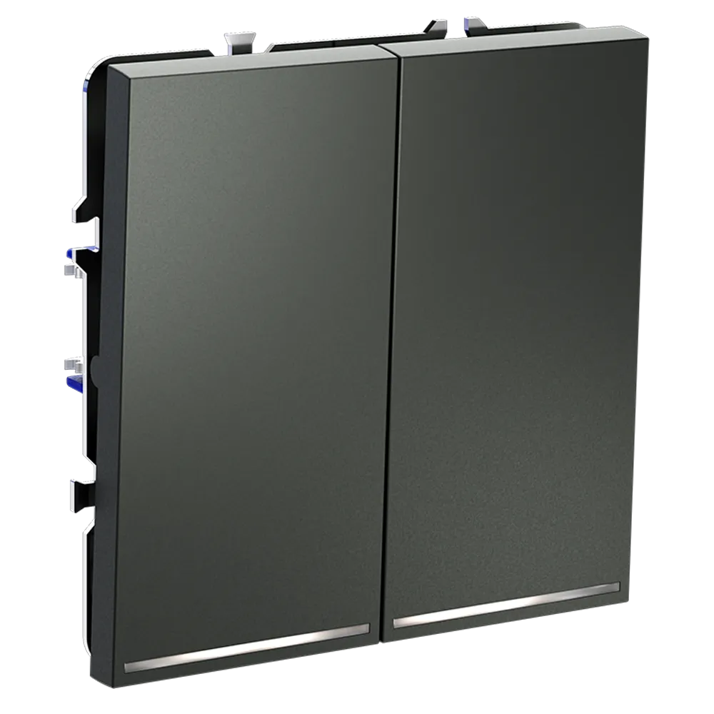 Двухклавишный выключатель VOLTUM S70 с подсветкой в цвете «титан» — это идеальное сочетание функциональности, современного дизайна и удобства использования в темное время суток. Благодаря встроенной светодиодной подсветке, вы легко найдёте выключатель даже при полной темноте, не нарушая атмосферы уюта в спальне, коридоре или детской.