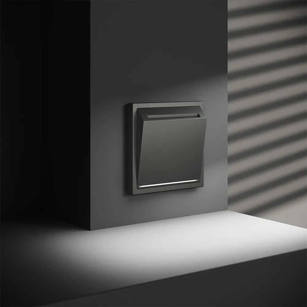 Проходной переключатель встраиваемый VOLTUM S70 одноклавишный с подсветкой 10А (титан)